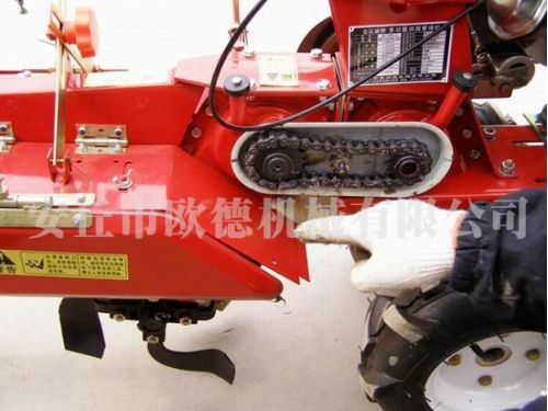 1.開溝培土機傳動鏈箱,如發現箱內油脂干裂,請松開螺絲打開鏈箱即可加潤油脂,一定要在旋耕軸上涂潤滑脂。